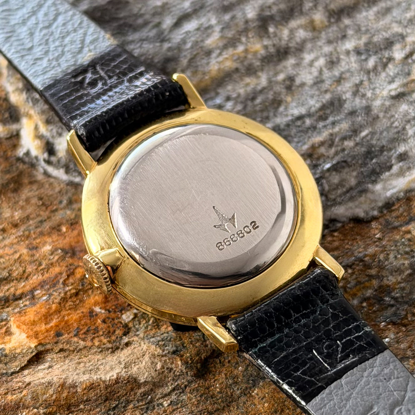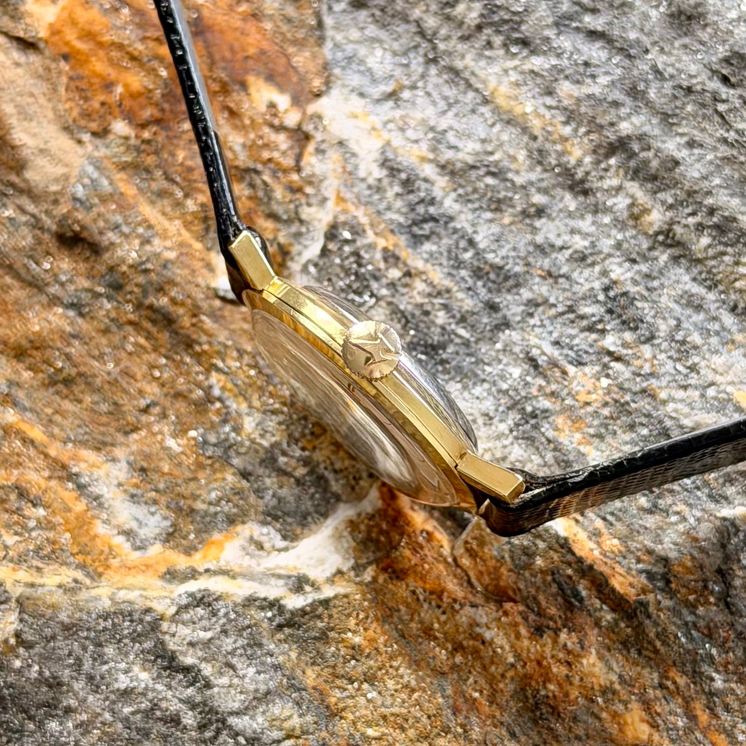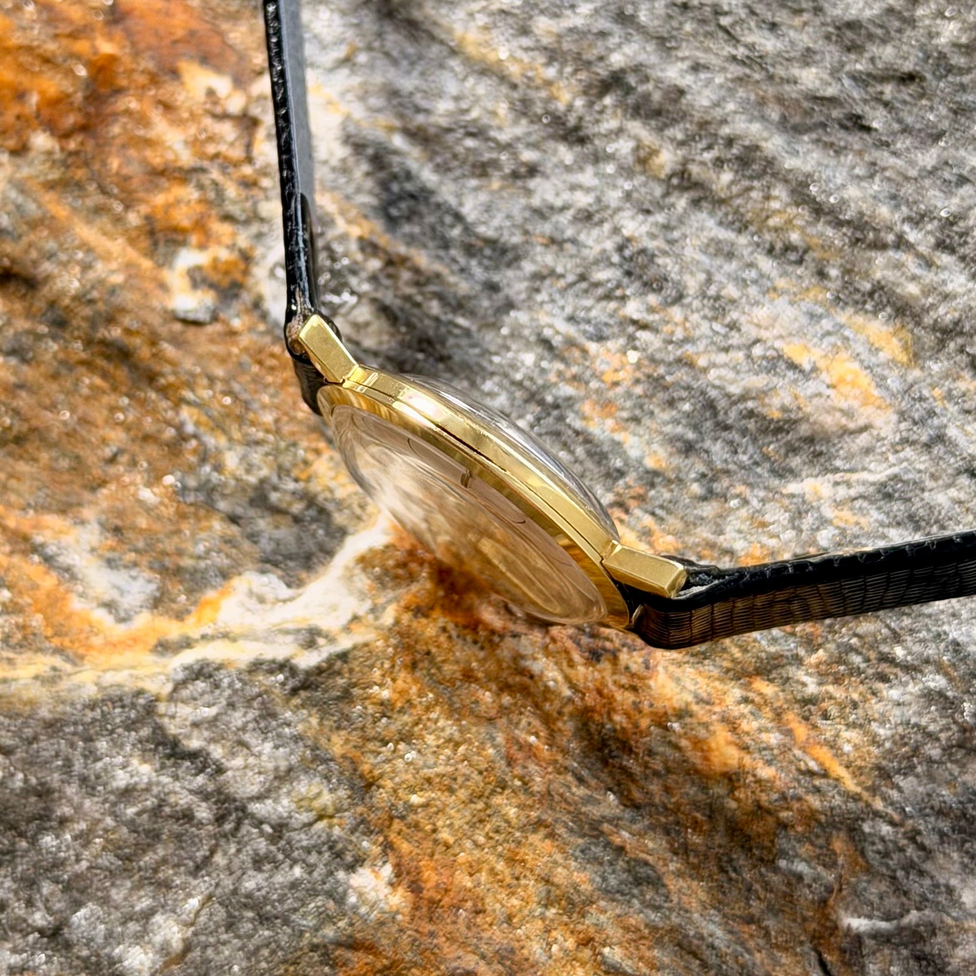 Стан годинника близький до NOS, фактично це новий екземпляр зі старих запасів. Корпус зберіг ідеальну заводську геометрію, а позолота продовжує сяяти. Присутні лише мінімальні сліди часу та зберігання, що лише підтверджує автентичність цієї вінтажної речі, якій понад 50 років, при цьому задня кришка з нержавіючої сталі має чіткі гравіювання та номер моделі.