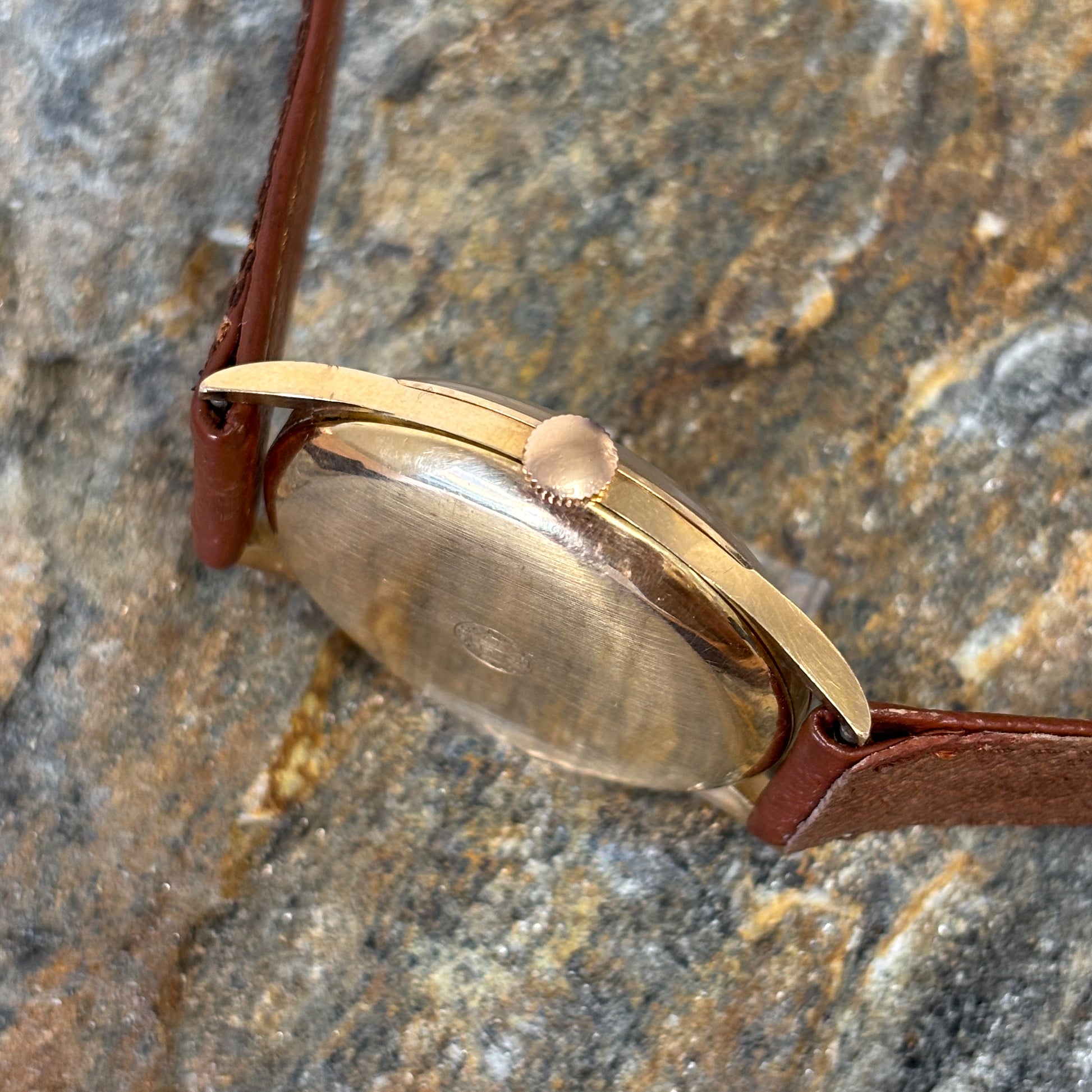 However, the true magic is hidden inside. The heart of the watch is a rare in-house 13-ligne caliber with 17 jewels. Its standout feature is a patented micro-regulator, allowing for filigree precision in timekeeping adjustments that was rarely achievable by standard calibers of that era. A classic brown strap harmoniously completes the look, making this timepiece an ideal choice for a collector seeking flawless aesthetics paired with engineering excellence.